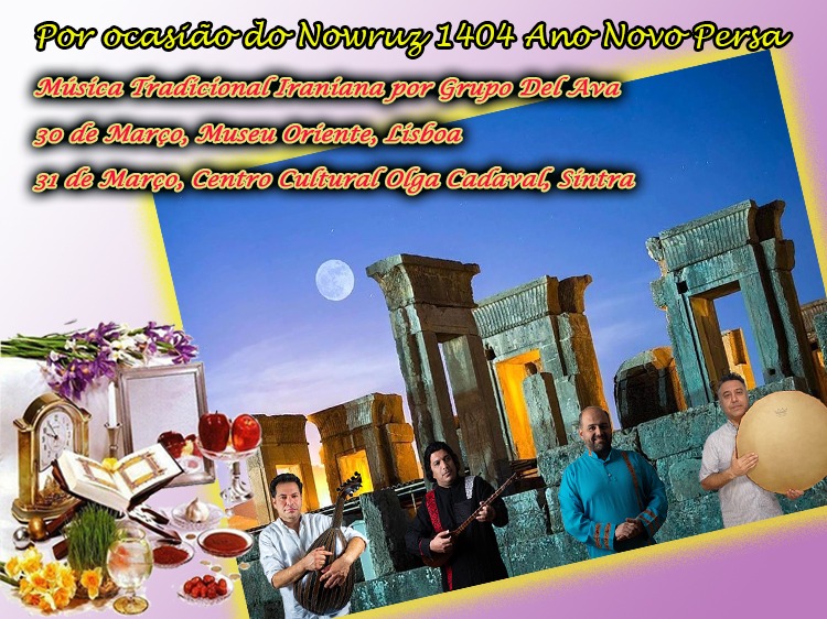 Por ocasião do Ano Novo Persa, a Embaixada da República Islâmica do Irão em Lisboa em colaboração com a Fundação Oriente e o Centro Cultural Olga Cadaval da Câmara Municipal da Sintra, irá realizar dois concertos da Música Tradicional Iraniana por Grupo Del Ava.